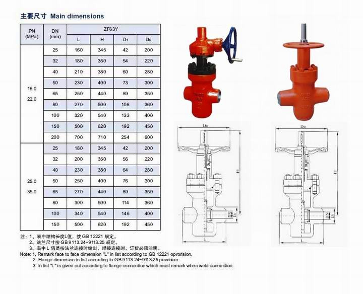 【ZF43Y高(gāo)壓平闆閘閥-主要(yào)外(wài)形尺寸】